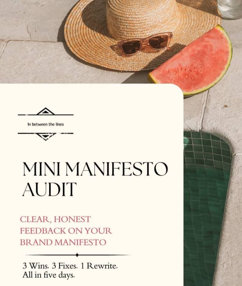 In this Mini Manifesto Audit, I’ll take a close look at your draft and give you clear, actionable feedback you can put to work straight away.