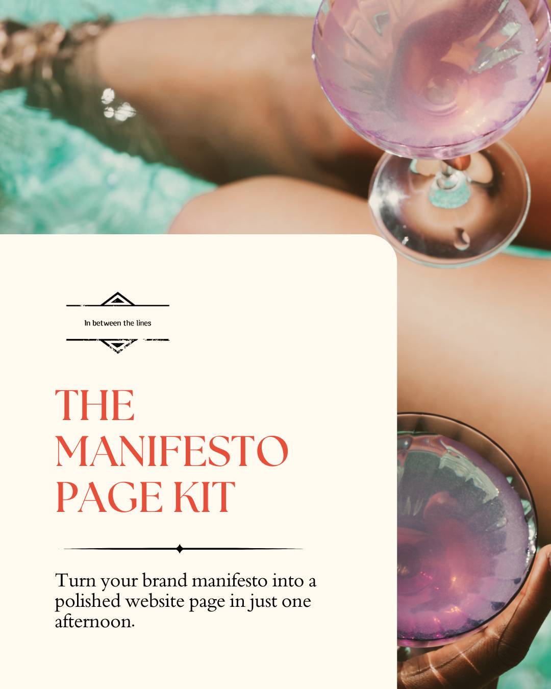 The Manifesto Page Kit gives you the wireframe, copy prompts, and a simple checklist to transform your manifesto into a clear, professional website page you can share with the world.